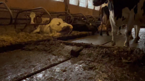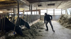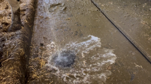 Trotz Gefälle im Boden reinigt der Entmistungsschieber ohne Probleme.