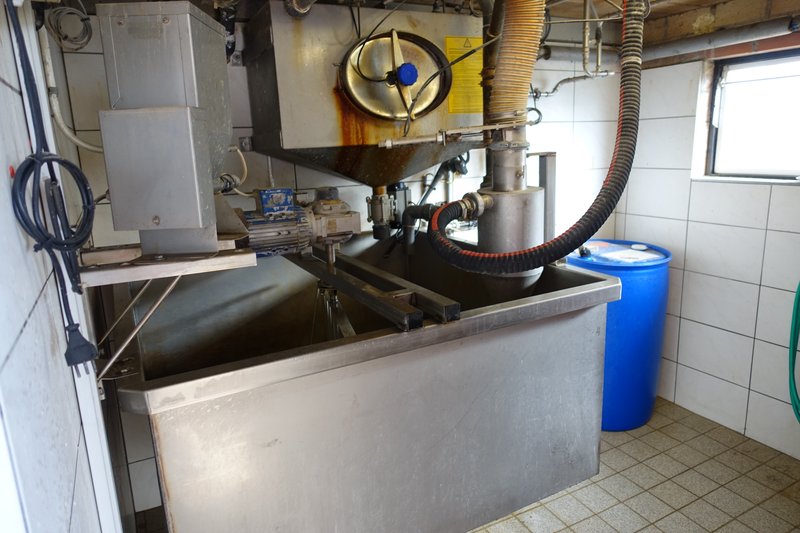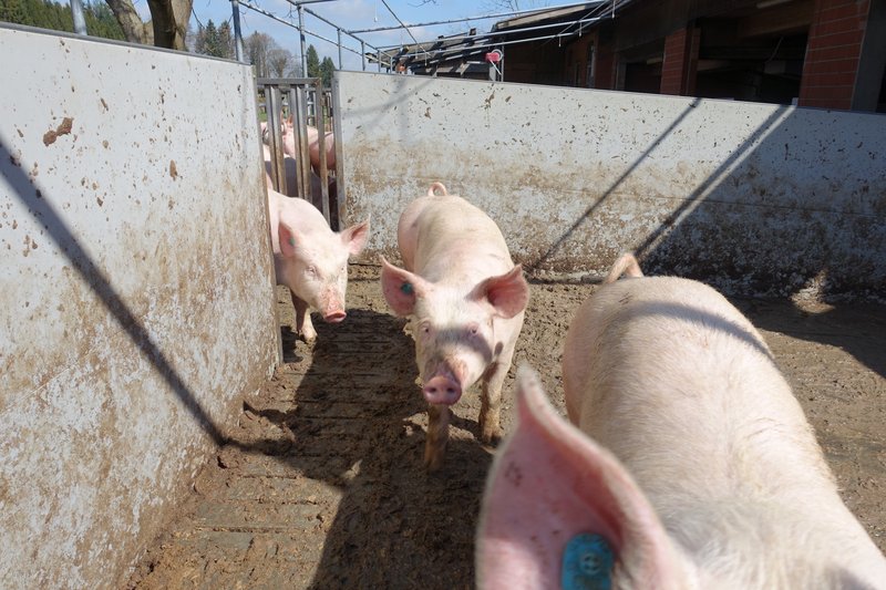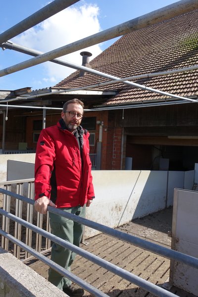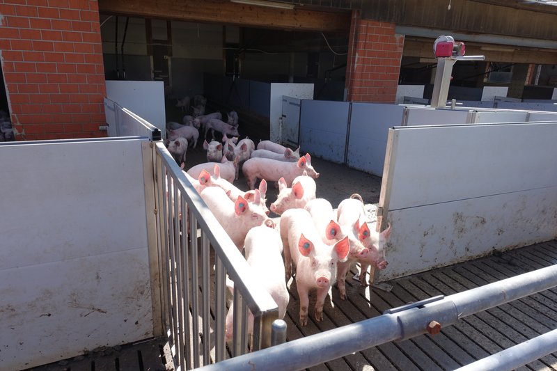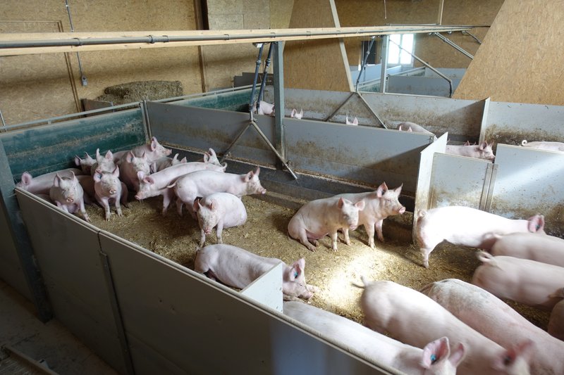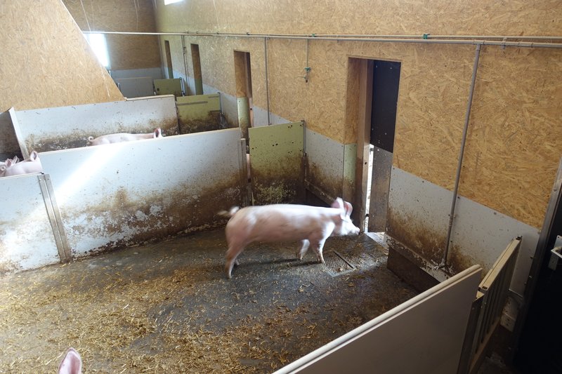 Blick auf den zum Schweinestall umgebauten Milchviehstall