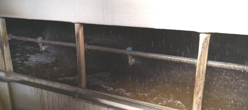 Photo de la zone de collecte de l’eau (phase de pré-lavage) : séparation des poussières.