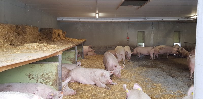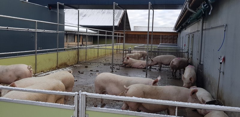 Bâtiment des truies, à l’arrière système automatique d’alimentation