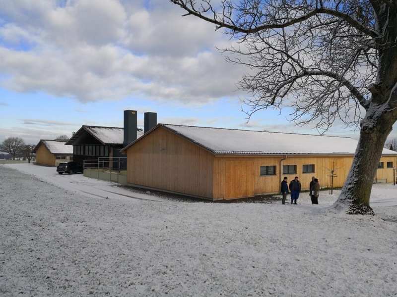 Nouveau bâtiment pour les truies et vue vers le lac de Constance