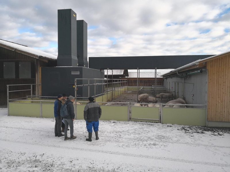 Au premier plan, nouveau bâtiment pour les truies (Stall 1), et derrière le bâtiment des porcs à l’engrais et celui des porcelets (bâtiment tout au fond).